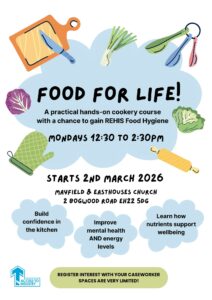 We’re excited to announce that our Midlothian Cooking Group returns next week in a revamped format. The ‘Food for Life‘ group will not only teach participants how to prepare budget-friendly, simple and nourishing meals, but it will also explore the nutrients in each dish and what they can do for the mind and body.